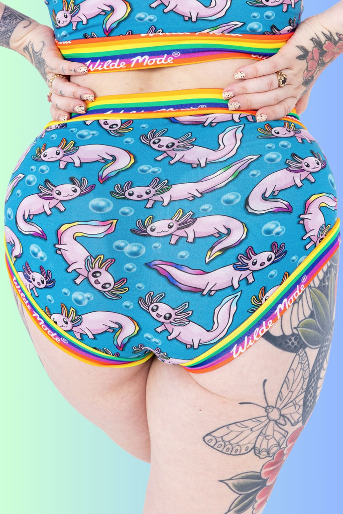 Rock out in these Pride Axolotl Briefs from Wilde Mode x Weirdling Designs: they're sure to add just the right amount of sass and cuteness to your underwear collection. Show your pride for LGBTQ+ while rocking an adorable amphibian design.🏳️🌈