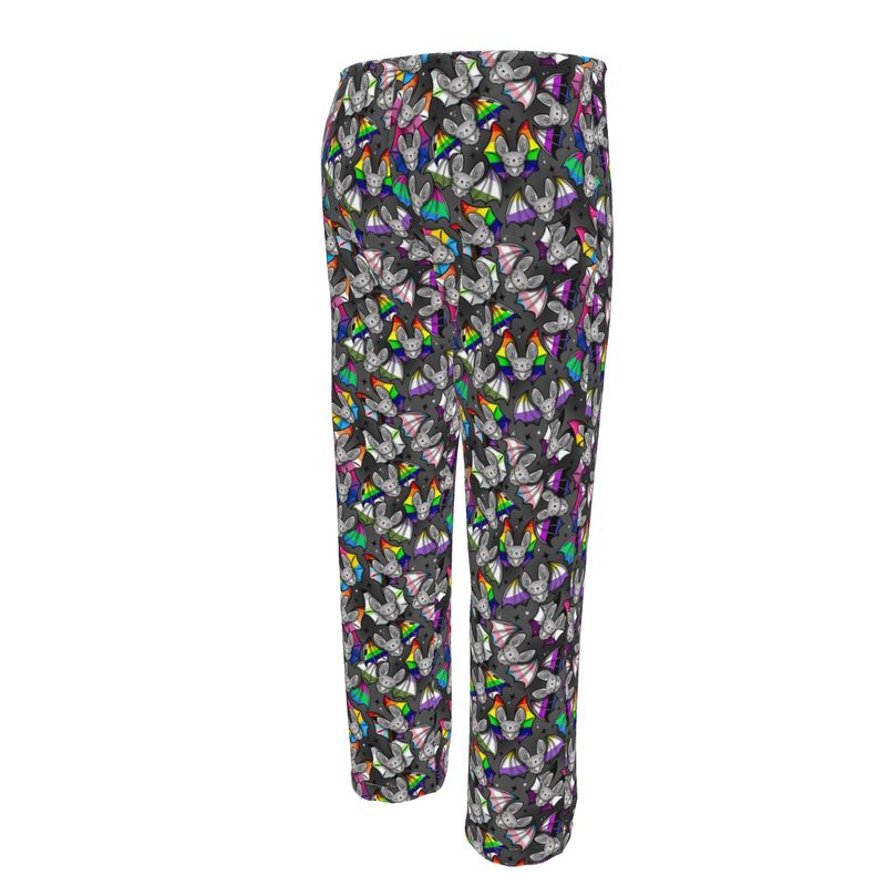 Get your cosy on with a side of queer chaos in our Pride Bats Organic Cotton Pyjama Trousers - masc fit, maximum comfort, and dripping in Wilde Mode x Becca Chaos magic. These trousers feature the iconic rainbow bats design, perfect for anyone who wants to serve goth cuteness with a side of Pride, even while snoozing.