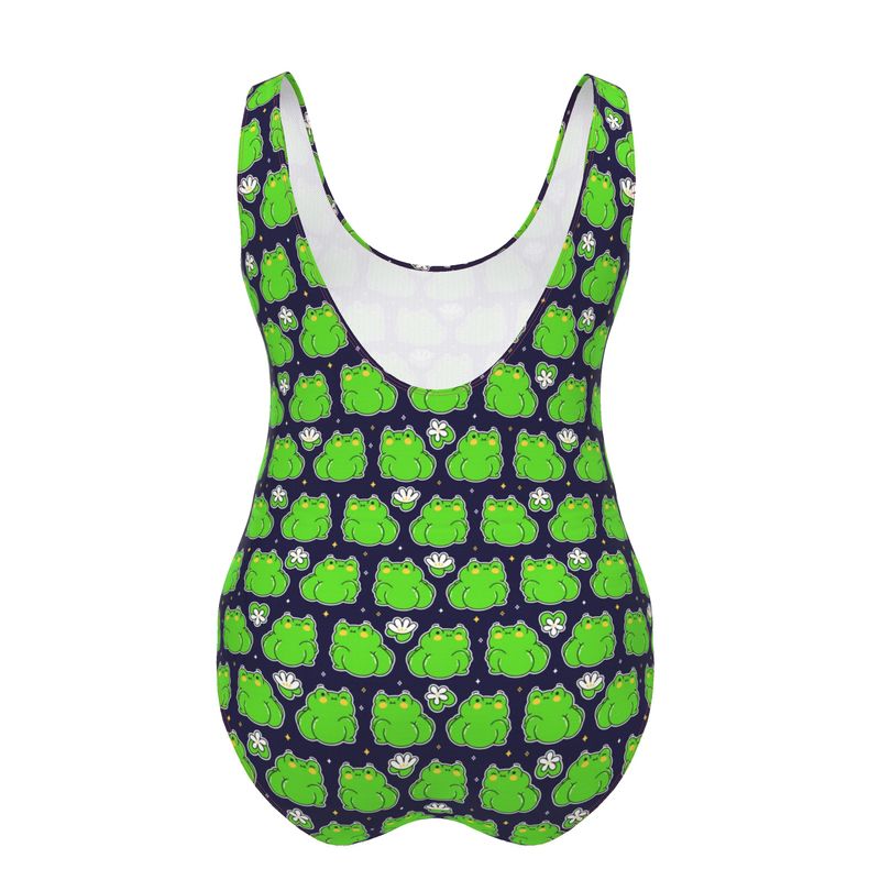 Get ready to channel your inner pond witch, water sprite, or mischievous frog gremlin in our Cheeky Frog Swimsuit. Featuring a bold all-over print, buttery recycled polyester, and a gorgeously smooth fit that loves every body. Whether you’re wild swimming, lounging, or just vibing near water like a cryptid in its natural habitat, this swimsuit has your back (and your bum).