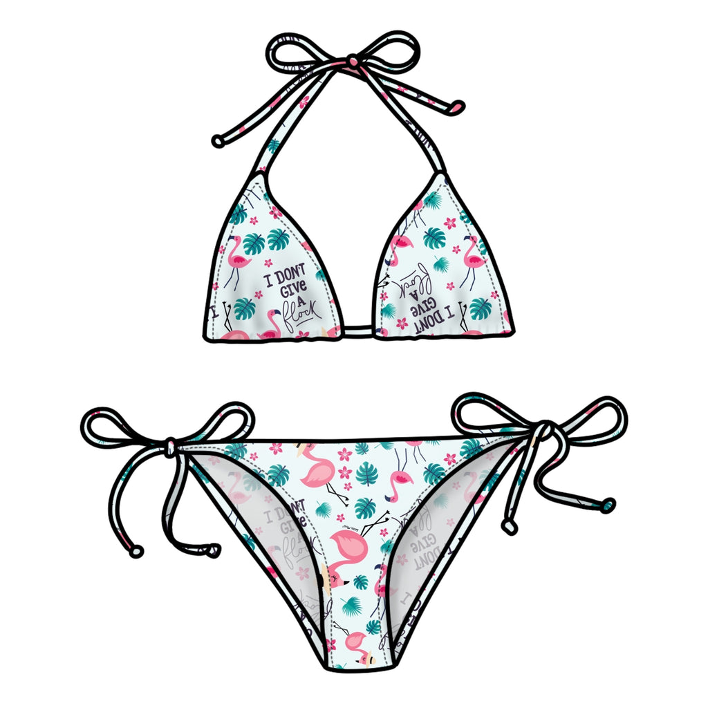 Get ready to turn heads this summer with our Wilde Mode itsy bitsy teeny weeny tie-string bikini! Handmade to order with shaped triangular cups and tie-string sides, this 2 piece bikini is perfect for summer and festival season. Plus, it's sustainable and made from recycled polyester. Fully lined for ultimate comfort and style.