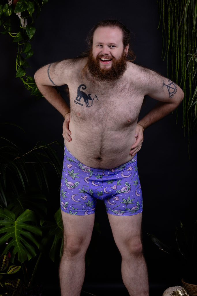 Kick back in ultimate comfort with our Wilde Mode Kush Vibes Organic Cotton Boxers. Featuring our exclusive cannabis leaf print, these boxers bring laid-back stoner energy to your everyday wardrobe. Made with ultra-soft organic cotton and designed for a gender inclusive fit, they’re perfect for chilling at home or strutting your stuff. Handmade ethically in Scotland, because feeling good should feel good.