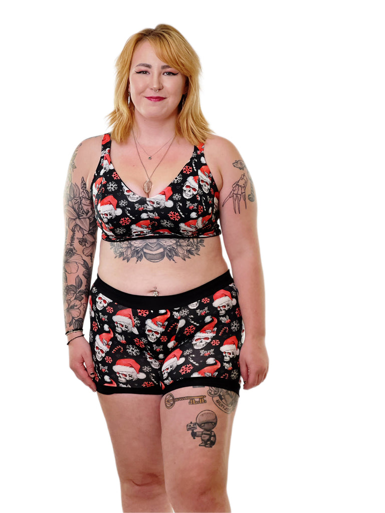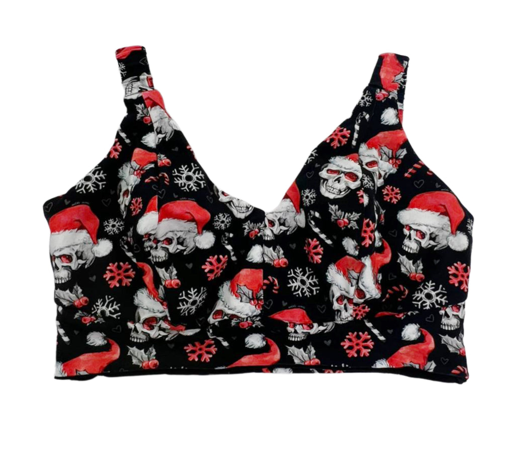 Get your creep on with this amazing Skull Santa Hat Bra!