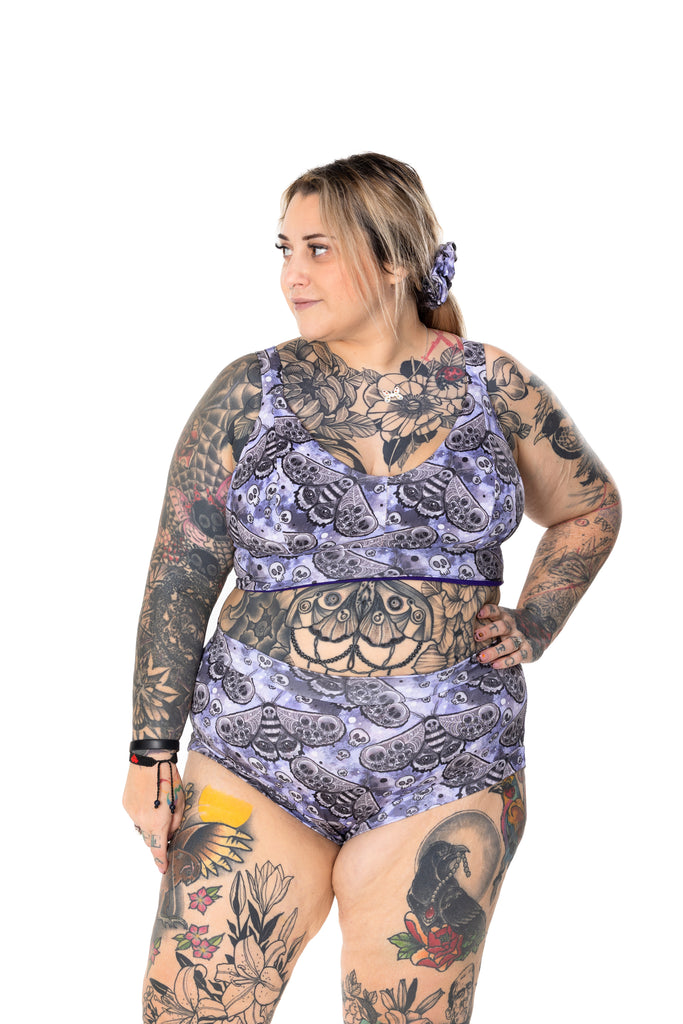 Bring a little spooky sweetness to your lingerie drawer with our Lilac Skull Moth Comfort Bra, created in collaboration with the fabulous Sugar Plum Creations. This limited-edition piece blends Wilde Mode comfort with Sugar Plum’s signature gothic whimsy — soft lilac tones, delicate skull motifs, and a vibe that’s equal parts dark and dreamy.