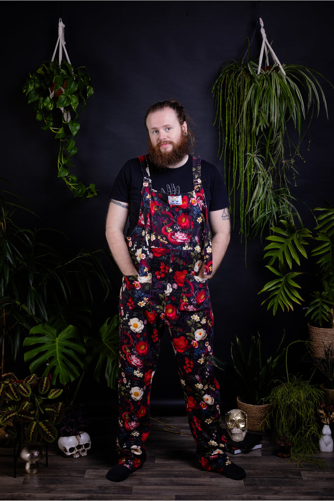 Martin he/him is wearing a size medium daisy dungaree in standard 31" leg and standard length body. He is 5 "8 and a UK 36" waisted jeans