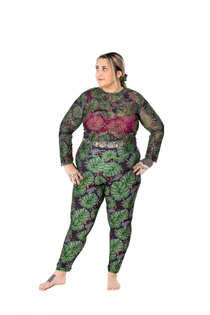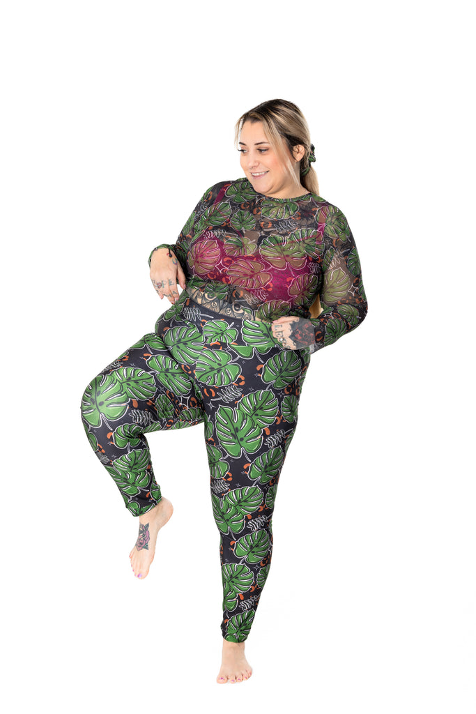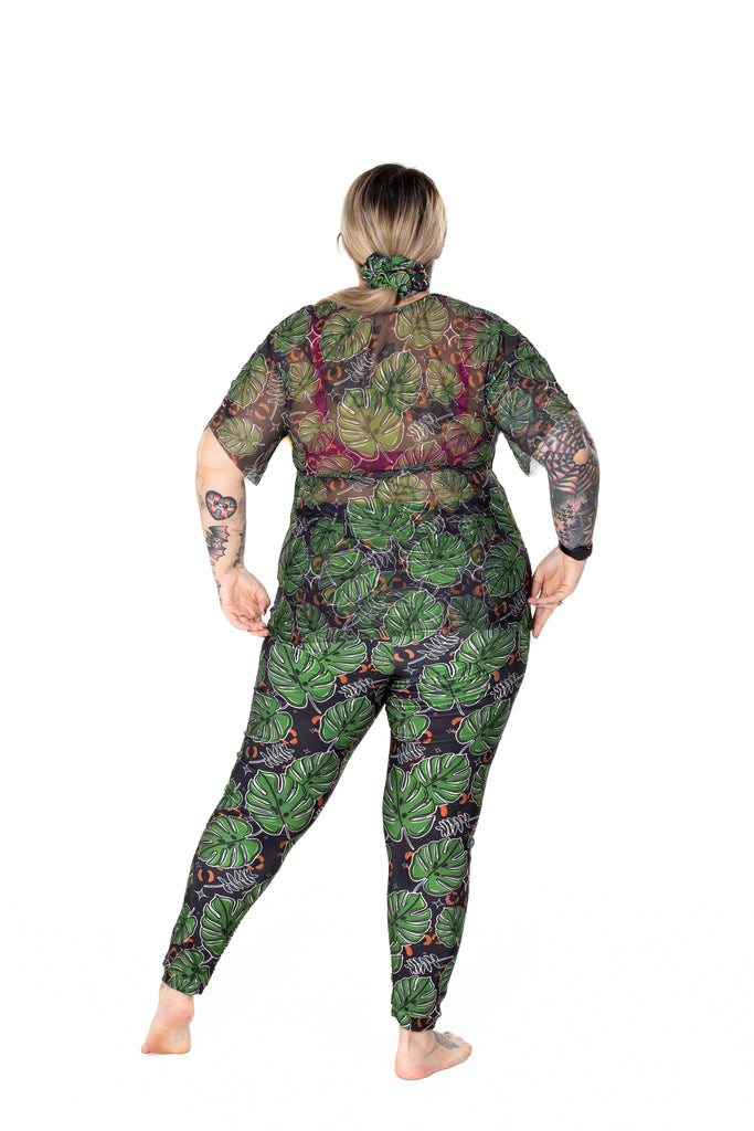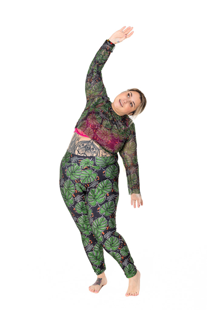 Make a splash — or just strut the shoreline — in the Wilde Monstera Swim Leggings, handmade in our Dundee studio from eco-friendly swim fabric. With their bold mix of Monstera leaves and leopard print (courtesy of our collab with @voodoochaosdesigns), these high-waisted beauties bring confidence, comfort, and SPF 50 protection to your wild swim days.