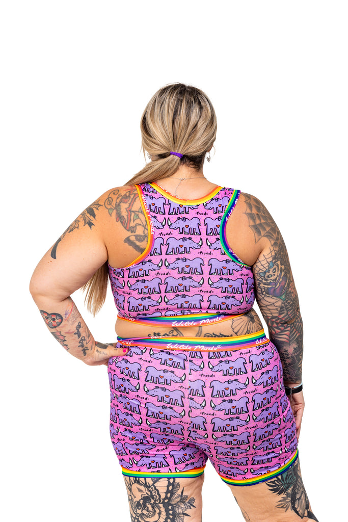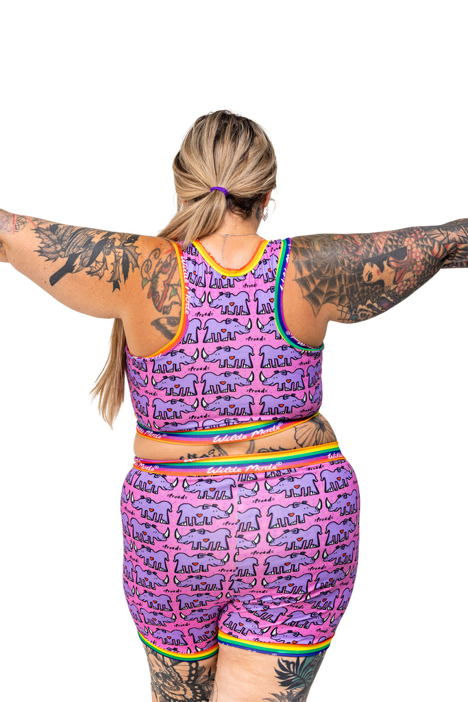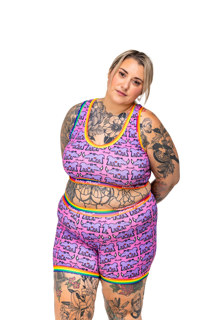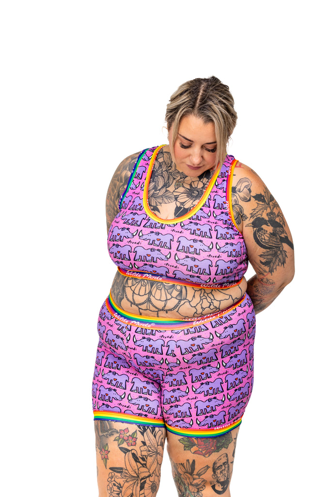 Step into queer strength and softness with our Rhino Love Boxer Shorts, part of our Pride collaboration with trans artist Matthew Hare. Featuring the iconic purple rhino — a symbol of LGBTQIA+ resilience — this design blends history, visibility, and joy in one gorgeous pair of pants.