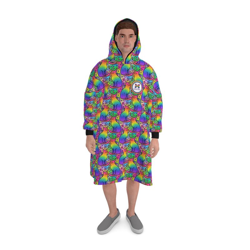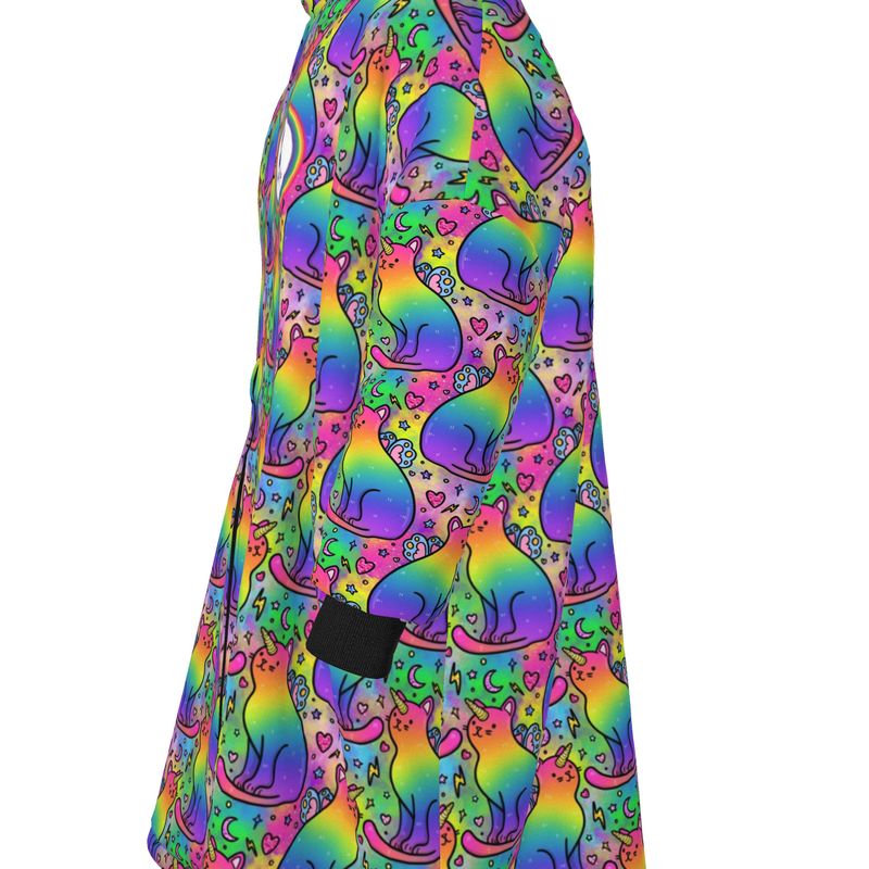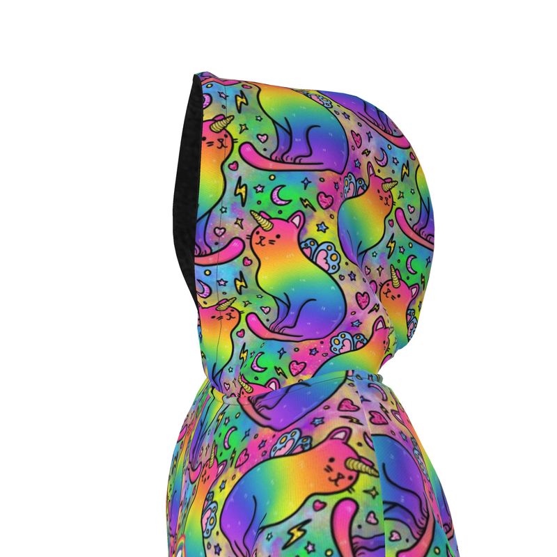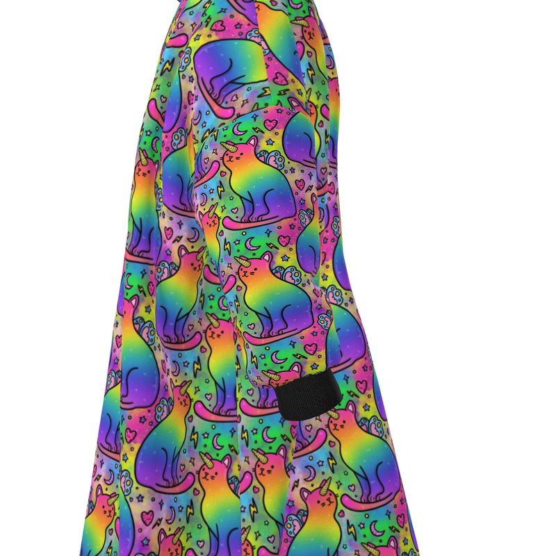 Transform your outdoor adventures into full rainbow goblin glory with our Rainbow Unicorn Cats Waterproof Changing Robe. Whether you're wild swimming, surfing, camping, festival-ing, dog-walking, or just trying to get changed in the car park without flashing your bits to the world — this robe has your back (and your front).