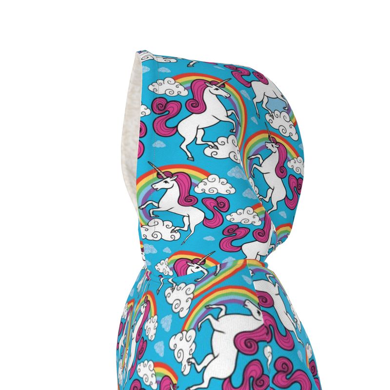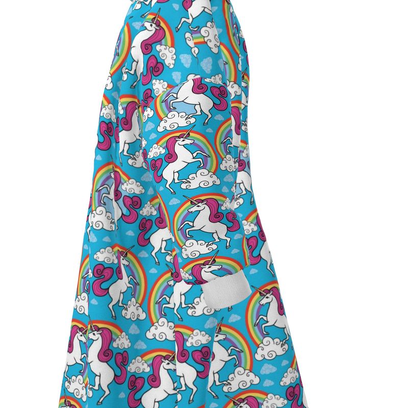 Step into pure magic with our Unicorns and Rainbows Waterproof Changing Robe. Designed for wild swimmers, cold water dippers, paddleboarders, beach lovers, festival goers, and anyone who lives life in full colour, this robe combines warmth, weather protection, and joyful fantasy artwork. Handmade to order in the UK, it delivers comfort, durability, and vibrant charm for all your outdoor adventures.