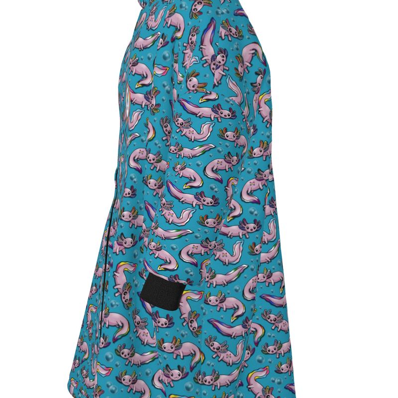 Made in the UK by our trusted production partner, this robe offers durability, long-lasting warmth, and reliable weather protection — all wrapped in an adorable axolotl print you won’t find anywhere else.