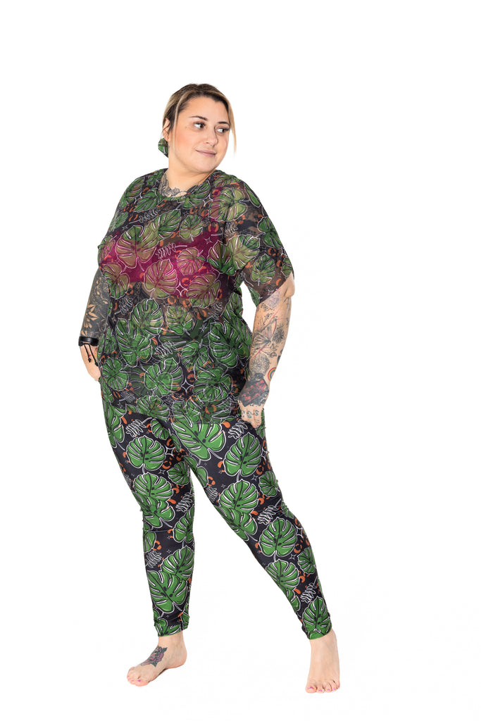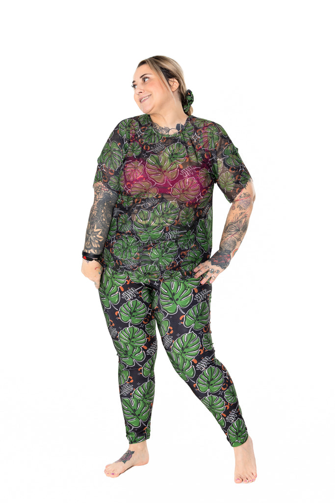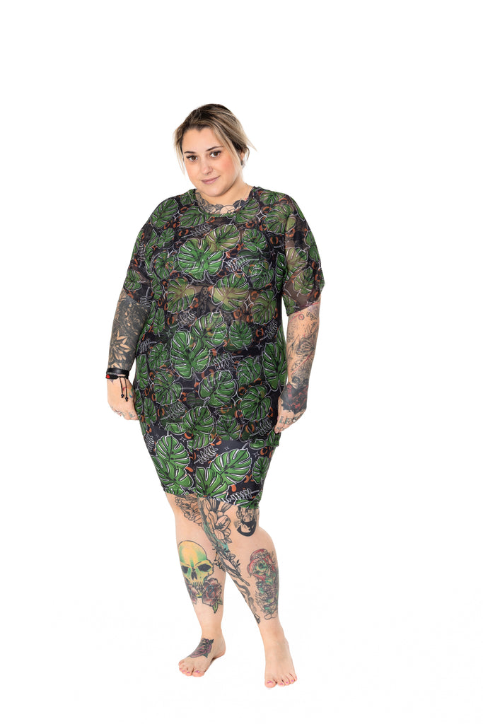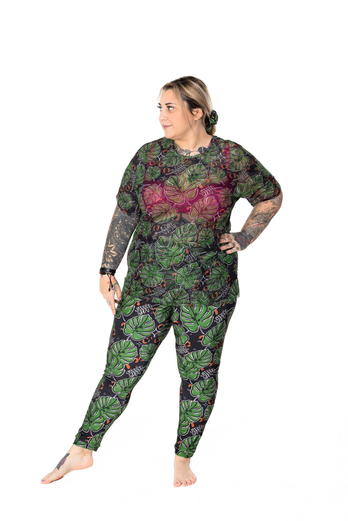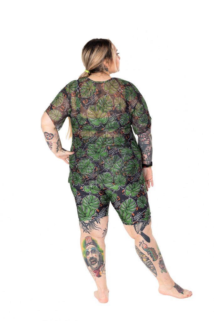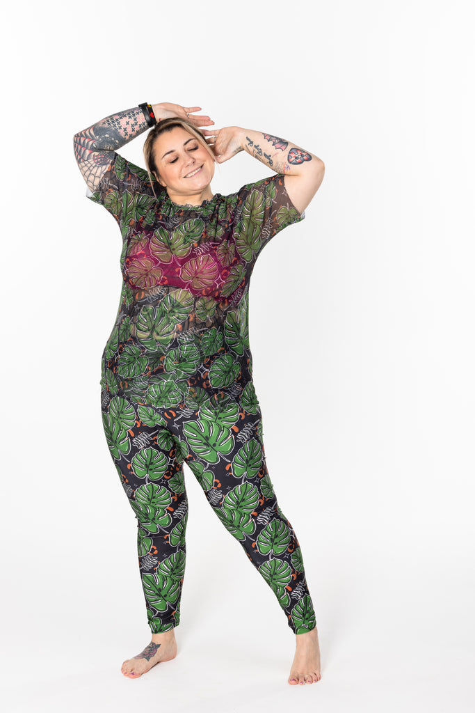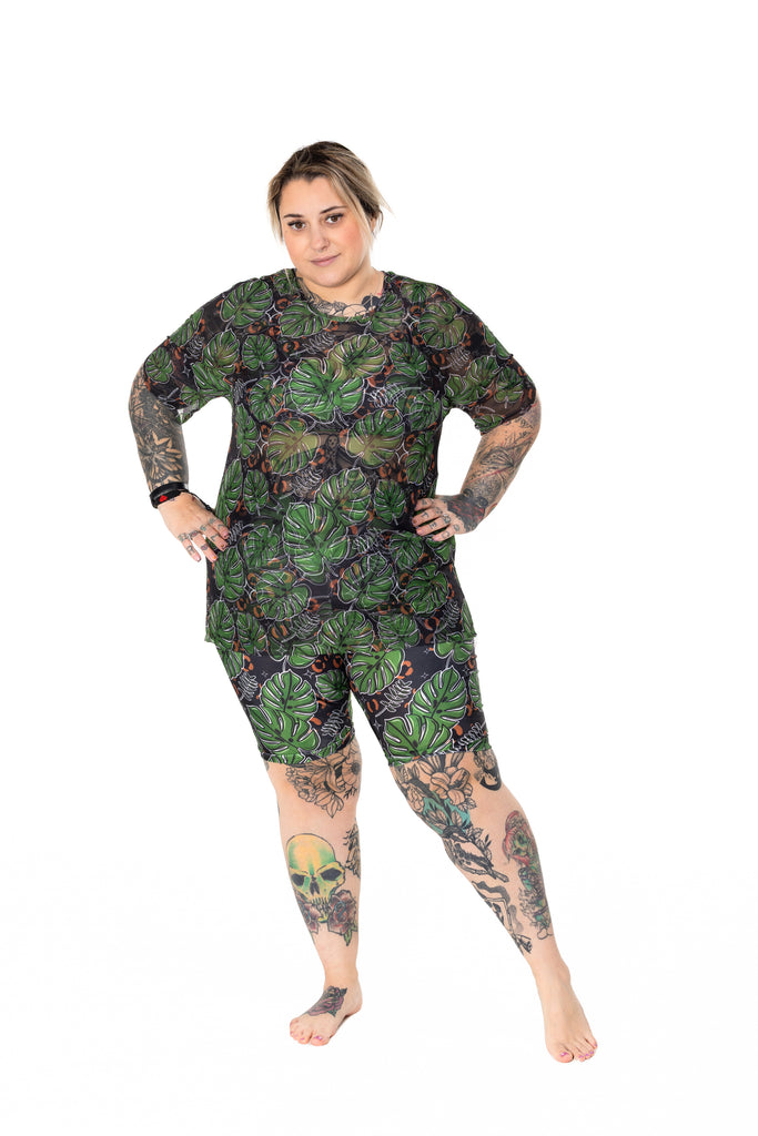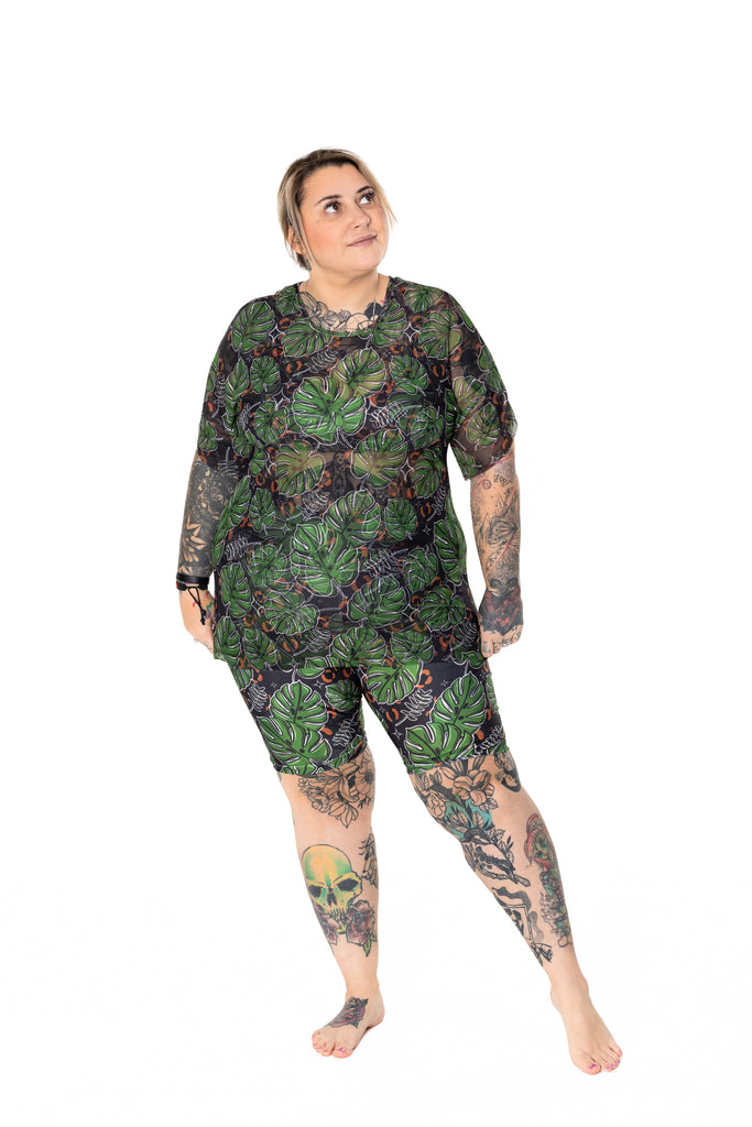 Take your leaf obsession to full bloom with the Wilde Mode x Voodoochaos Monstera Fine Mesh T-Shirt Top. Bold, sheer, and endlessly layer-able, this fine mesh tee brings tropical energy into every season. Whether you’re throwing it over a bralette, tucking it into high-waisted jeans, or wearing it under a dungaree dress, it’s the versatile piece your wardrobe didn’t know it was missing.