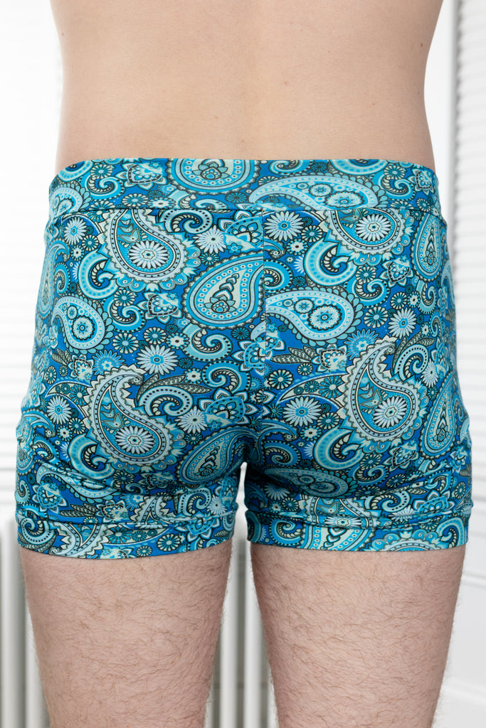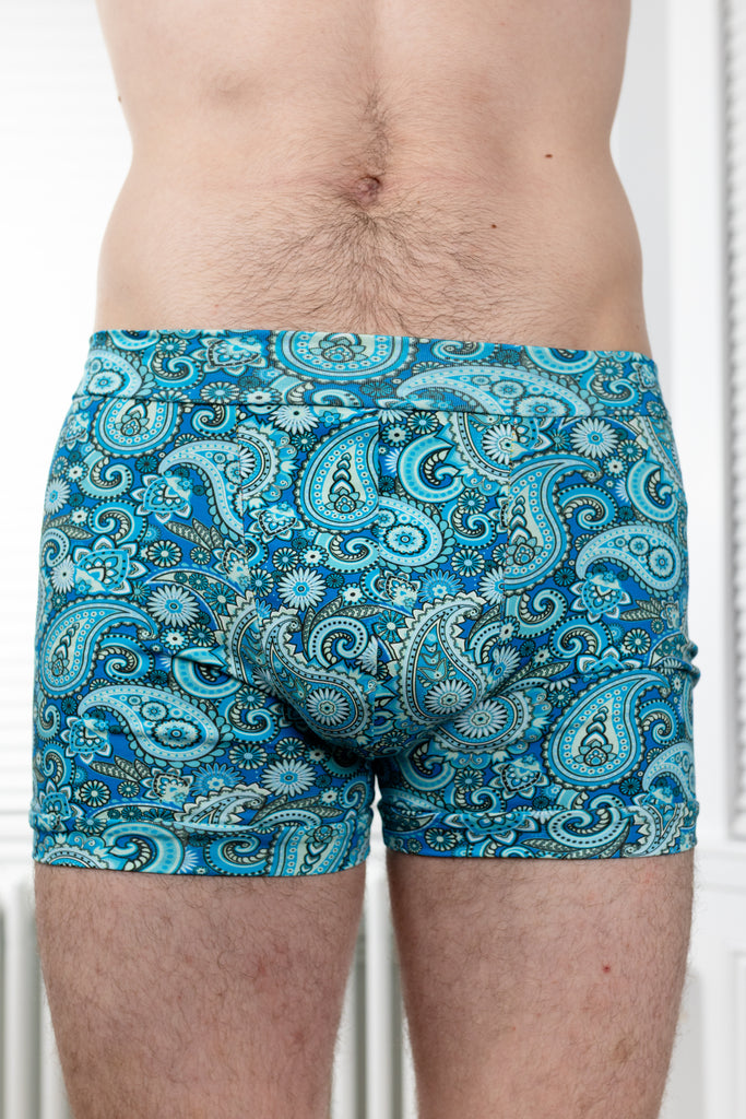 Slip into comfort that’s got more swagger than your gran’s best china set. Our Blue Paisley Print Comfort Boxers are handmade in our Dundee studio (yes, actually made by us, not a faceless factory) using 95% organic cotton and 5% elastane for that perfect stretch. Certified OEKO-TEX® so your bits are as safe as your soul, these boxers come in both pouched and pouchless options — because choice matters, darling.