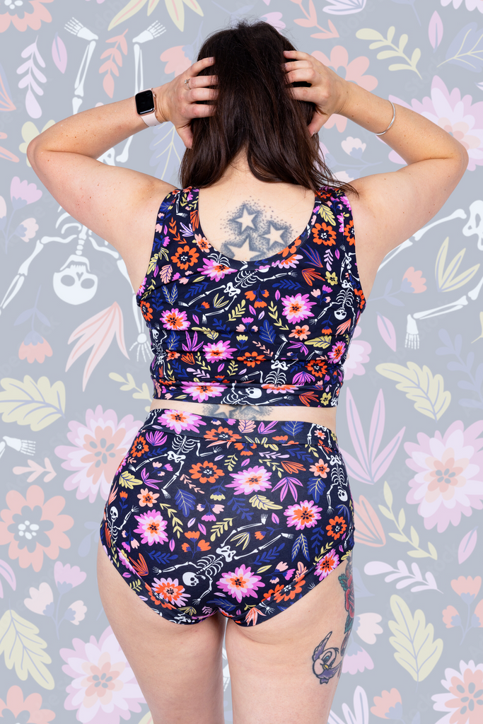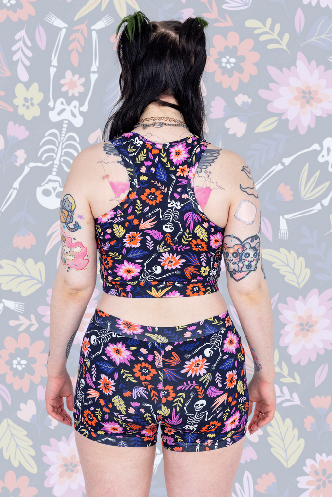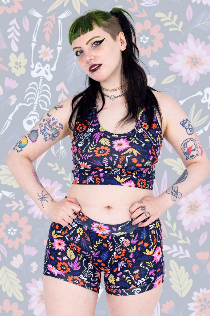 You won't have the blues in this Dancing Skeletons Comfort Top! Boogie the night away in comfort and style with this floral top, featuring dancing skeletons garbed in vibrant colors. Let your style move to the beat!
